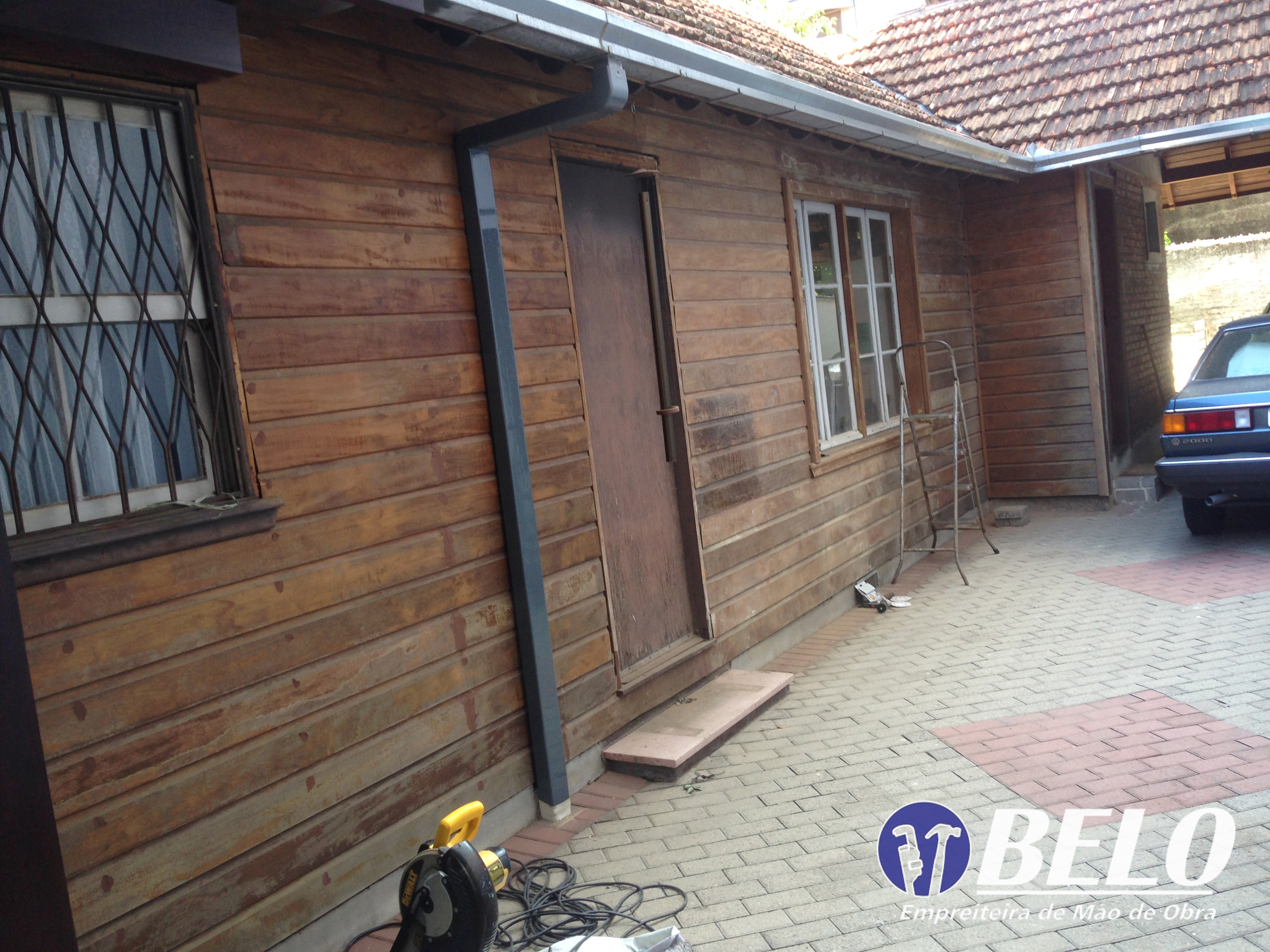 Durante a obra foi realizada a total lixação das paredes, retirando totalmente a antiga tinta, para que pudéssemos assim fazer a aplicação do jimo anti cupim e em seguida da nova tinta. O mesmo passo foi feito em todas as janelas, juntamente com a aplicação de nova massa para fixação dos vidros.