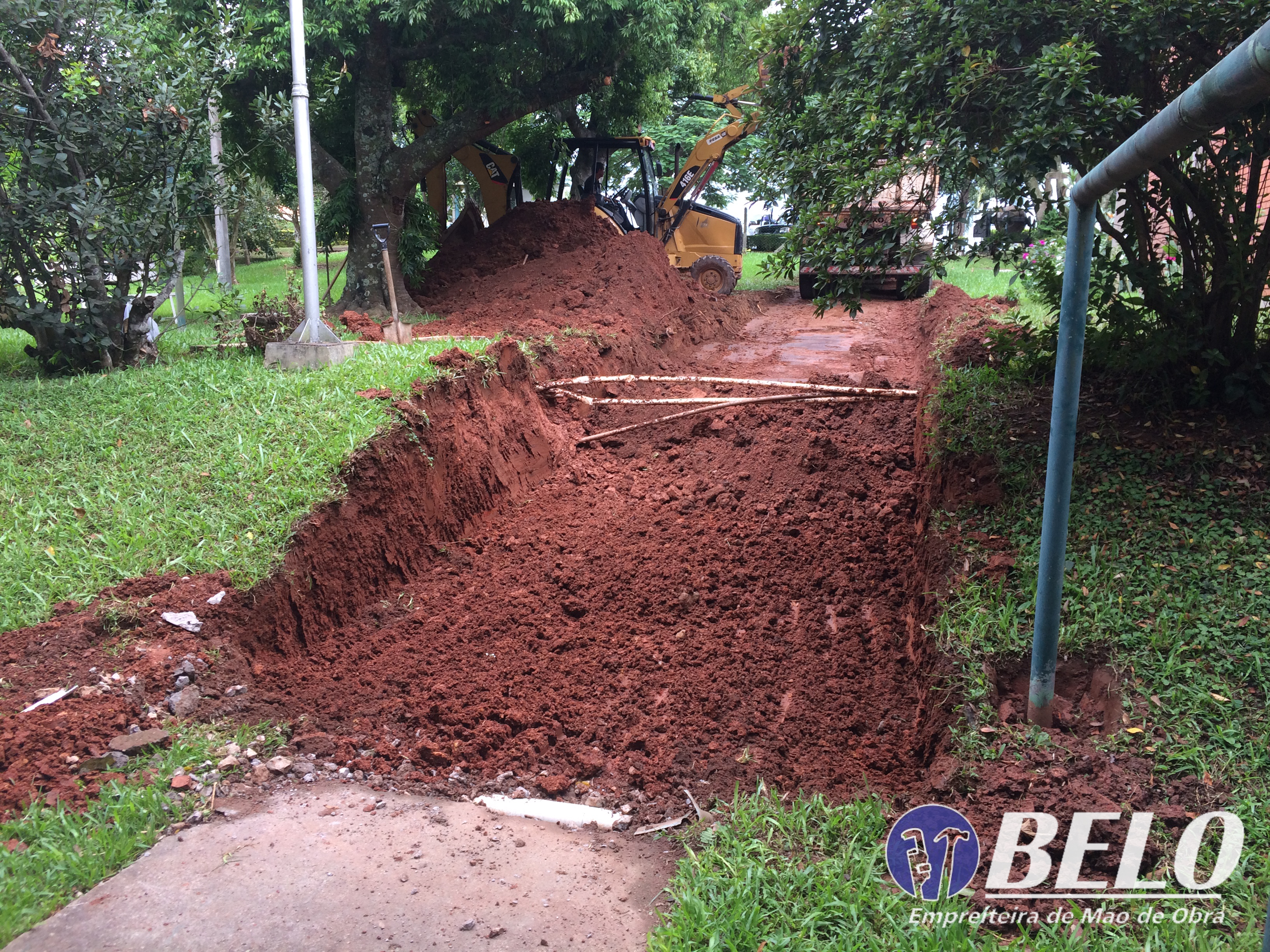 Podemos ver que foi feito um trabalho minucioso com a retroescavadeira, mantendo total cuidado com os encanamentos que se encontravam no local, tanto de elétrica como da parte hidráulica. Após escavação e feito novas instalações elétricas e hidráulicas, começamos então a parte bruta da obra, efetuando a perfuração das microestacase com a profundidade de 3m e em seguida a concretagem das mesmas. Feito assim a nossa "base", fomos para o próximo passo, a construção das duas cortinas de contenção com uma ótima estrutura diante dos painéis, para que o resultado fosse o esperado.